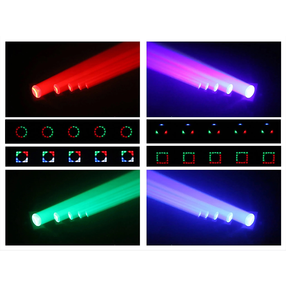 Ultimate flexibility and powerful illumination are offered with the BeamZ Galaxy5 moving head light. Hosting five 40W 4-in-1 RGBW LEDs directly affixed onto a lightweight, portable bar, this system is an efficient lighting solution providing vivid displays and dynamic movement. Integrated RGB LED pixel rings extend creative options by delivering intricate patterns and dazzling visuals for any setting.